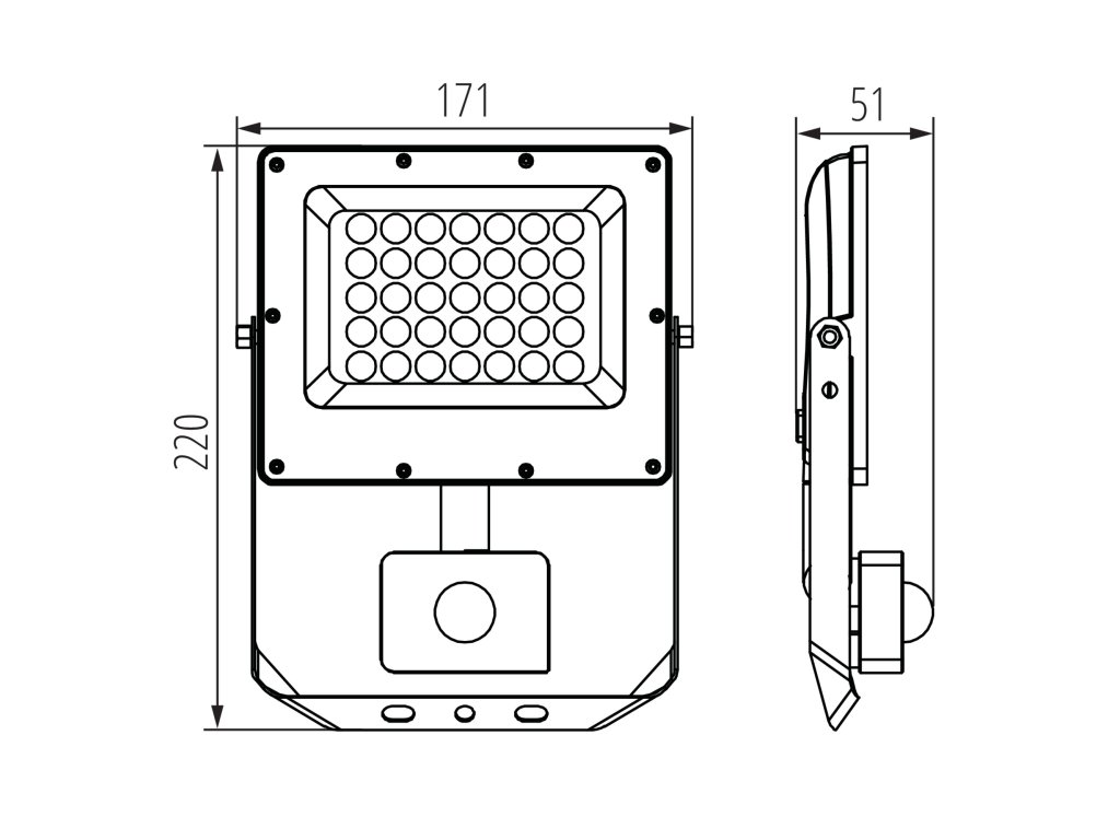 Rad svetlometov Kanlux ACETE je moderné riešenie osvetlenia, ktoré zodpovedá najnovším trendom na trhu. Rad ACETE ponúka možnosť zmeny teploty farieb (3000K, 4000K a 6500K), ktorá sa stáva štandardom na trhu. Svetlomety Kanlux ACETE sú k dispozícii v piatich výkonoch: 10W, 20W, 30W, 50W a 100W, čo umožňuje ich prispôsobenie širokej škále aplikácií. Séria obsahuje dve verzie – bez senzora as PIR senzorom, poskytujúci ešte väčšiu flexibilitu použitia. Verzia s PIR senzorom ponúka nastavenie doby svietenia, intenzity osvetlenia a oblasti detekcie. Výrobky z radu ACETE sa vyznačujú vysokou svetelnou účinnosťou 100 lm/W, ktorá zaručuje efektívne osvetlenie s nízkou spotrebou energie. Pevná konštrukcia svietidiel z liateho hliníka a plastový (PC) difúzor zaisťujú trvanlivosť a odolnosť voči poveternostným vplyvom. Svetlomety ACETE majú triedu ochrany IP65 pre verziu bez senzora a IP44 pre verziu s pohybovým senzorom. Uhlovo nastaviteľný montážny držiak umožňuje presné nastavenie smeru svetla. Pripojovací kábel s dĺžkou 20 cm navyše uľahčuje inštaláciu. Uhol osvetlenia 90° zaisťuje široký a rovnomerný rozptyl svetla.Dodatočné parametre
