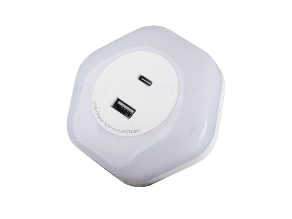 Kanlux BOLA LED je zásuvná LED lampa s dvoma USB portami (A a C). Lampa môže pracovať v jednom z troch režimov - ON - trvalo zapnuté /OFF - trvalo vypnuté/ AUTO - rozsvieti sa pri nízkej intenzite svetla (lampa má súmrakový senzor). Vďaka USB portom môže svietidlo fungovať aj ako nabíjačka pre mobilné zariadenia. Kanlux BOLA vyžaruje mierne nočné svetlo (4 lúmeny) v teplej bielej farbe.Dodatočné parametre