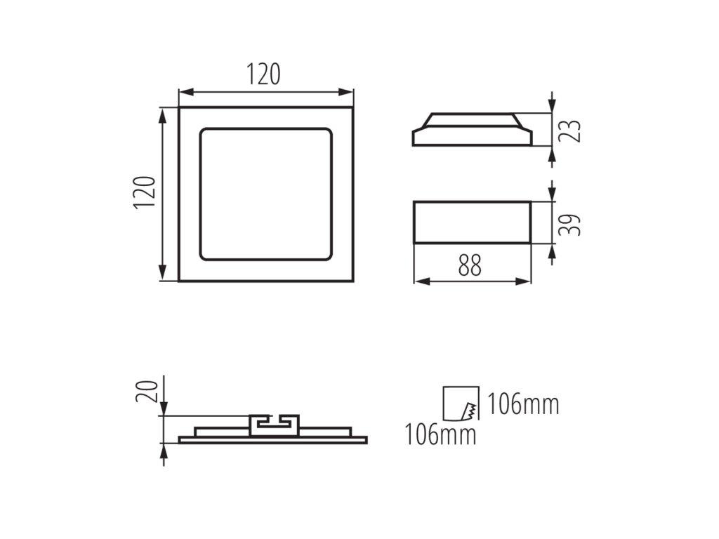 | Veľkosť montážneho otvoru [mm]: | 106x106 |