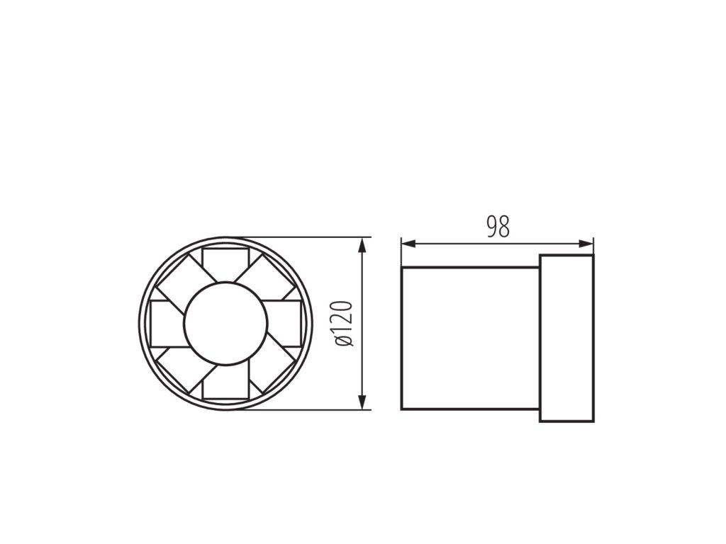 Ventilátor potrubný o priemere 120 mm WIR WK-12 70901