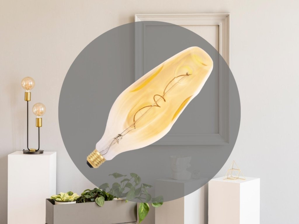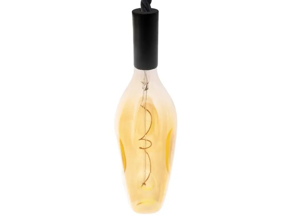 - použité LED sú filamenty so špeciálnym tvarom - Filament so zaujímavým tvarom a jemne zlatým sklom "VINTAGE", ktorý vytvára veľmi príjemný vizuálny efekt, vhodný na dotvorenie atmosféry v miestnosti