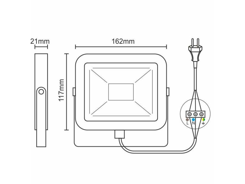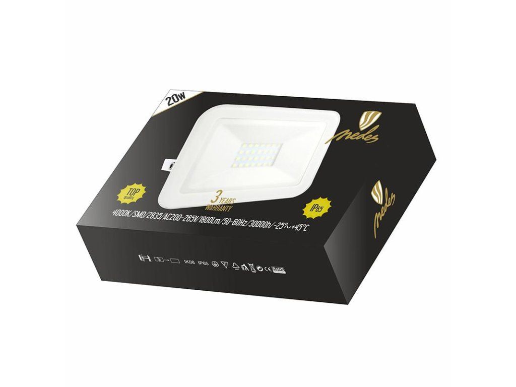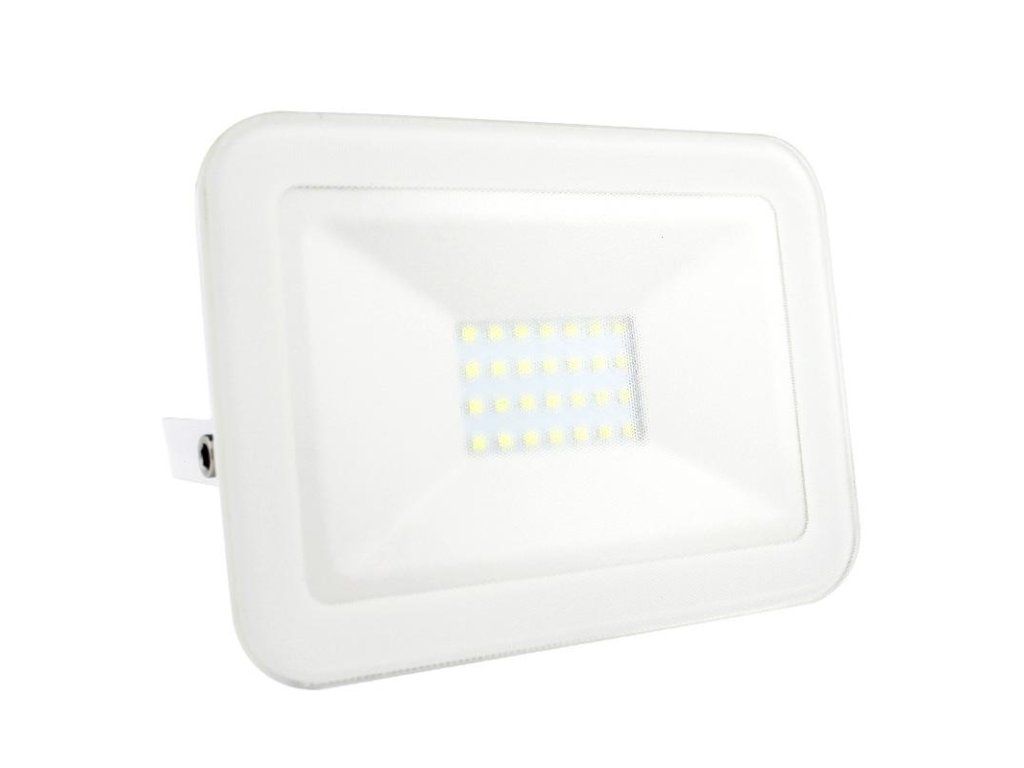 LED reflektor LF2122 v bielej farbe, s výkonom 20W, svietivosťou 1800Lm a farbou svetla 4000K disponuje držiakom a vysokokvalitným LED čipom.