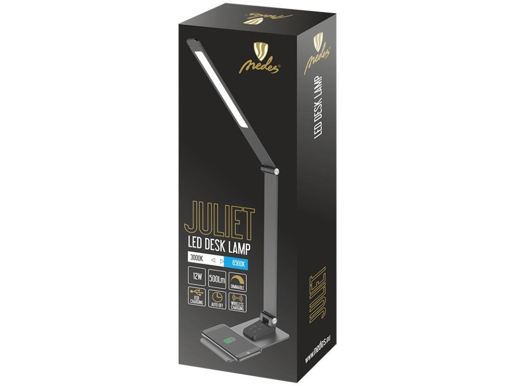LED lampa JULIET stmievateľná s bezdrôtovým nabíjaním, časovačom a USB 12W - DL5303/B