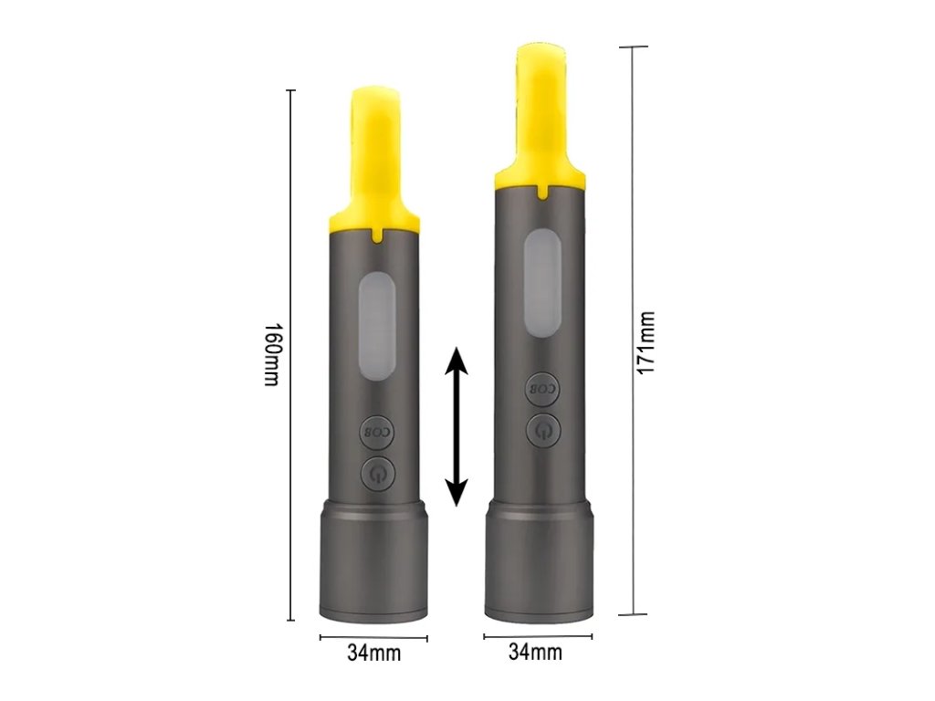 | Funkcie svetla: | 5W SMD - 100% / 5W SMD 55% / 5W SMD 30% / 5W SMD blikanie / 5W SMD SOS / zoom 3W COB 100% / 3W COB 30% /3W COB červená / 3W COB červená - blikanie |