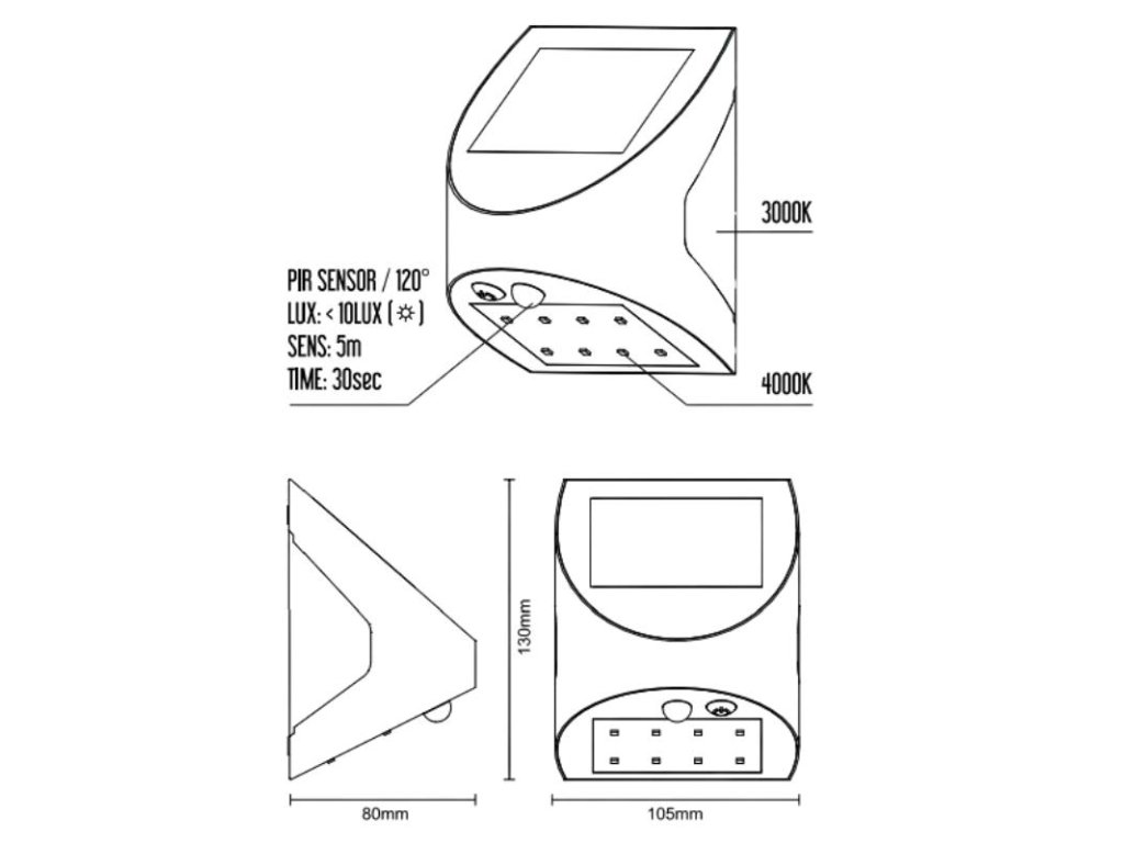 2.(<10Lx) => SENSZOR ON ( 4000K ) - ( po zotmení senzor reaguje na pohyb, po zaznamenaní posledného pohybu bude svietiť 30s na plný výkon )