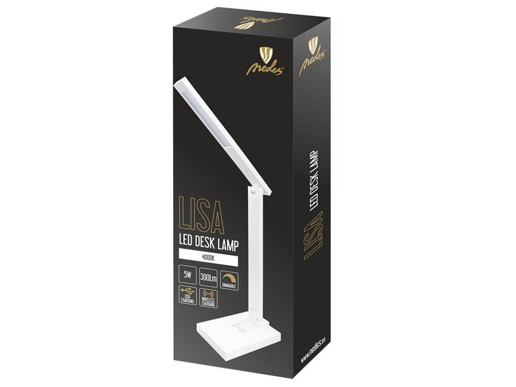 LED stolná lampa LISA značky NEDES, ponúka kvalitné LED svetlo, vhodné pre detskú izbu, kanceláriu, či pracovňu. Táto dizajnová stolná LED lampička poskytuje najkvalitnejšie osvetlenie v neutrálnej bielej farbe. Je vybavená funkciami, ako je stmievanie, bezdrôtové nabíjanie a USB nabíjanie, čo prináša do Vášho interiéru praktický a funkčný rozmer. Ideálne riešenie pre účinnné a multifunkčné osvetlenie miestnosti. Vďaka svojej nízkej spotrebe energie, sú tieto svietidlá obľúbené na celom svete.