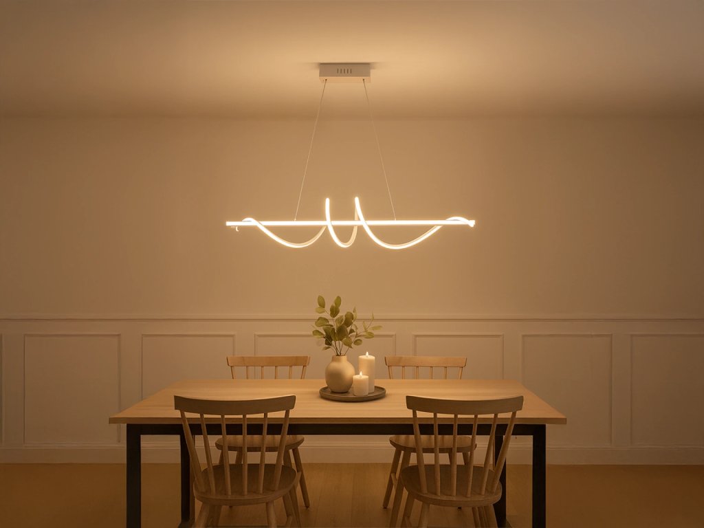 LED dizajnové závesné svietidlo s diaľkovým ovládačom RF 2,4GHz značky NEDES, je lampa vhodná do kuchyne, jedálne, spálne, chodby alebo obývačky. Tieto svietidlá vynikajúco kombinujú moderný štýl s najvyššou kvalitou. Svetlá sú ovládané SMART technológiu pomocou aplikácie NEDES Smart.