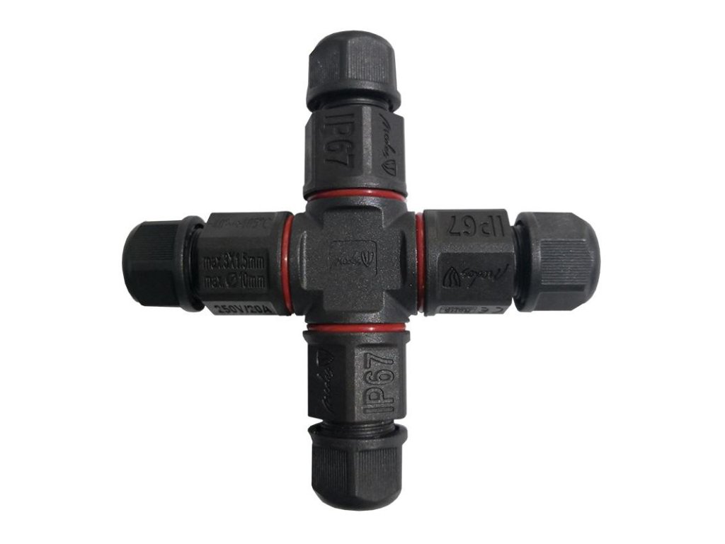 Konektor IP67/4way značky NEDES, je ideálny na spájanie káblov vo vonkajšom prostredí, príp. v zemi do hĺbky 1m.