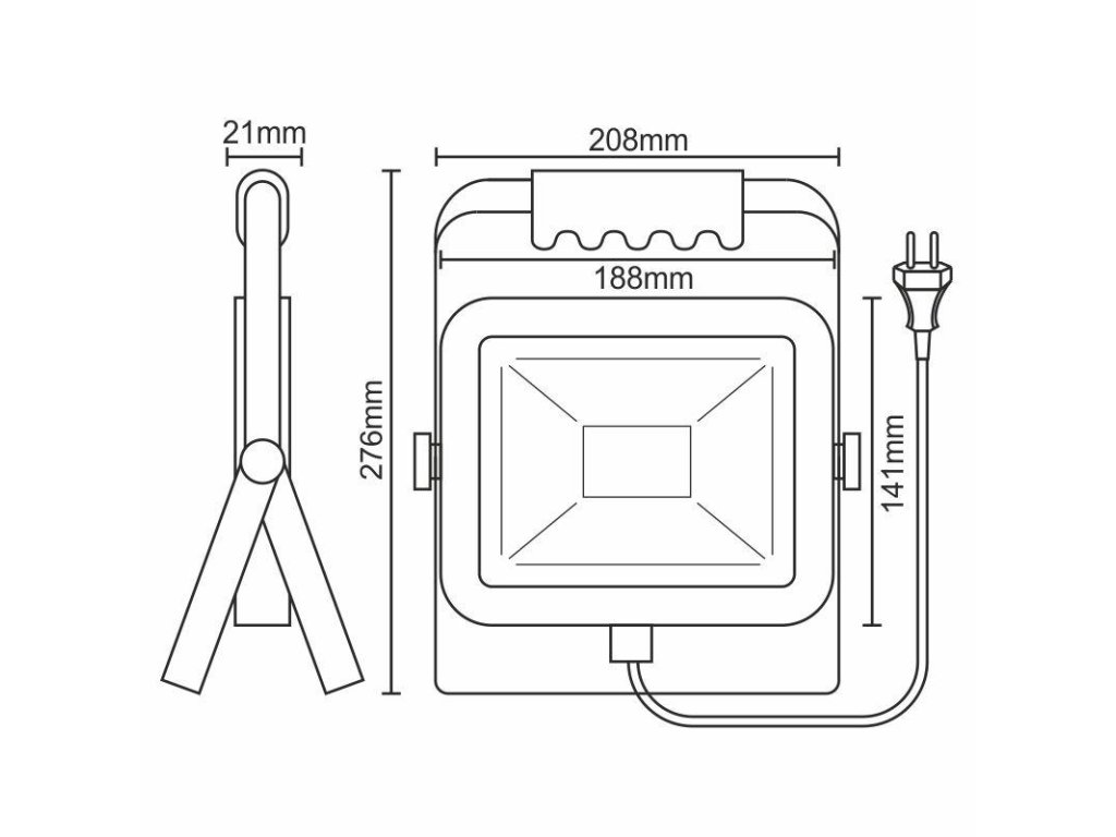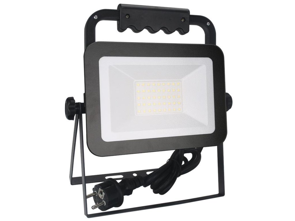 LED reflektor LF2023H v čiernej farbe, s výkonom 30W, svietivosťou 2700Lm a farbou svetla 4000K disponuje držiakom, stojanom a vysokokvalitným LED čipom.