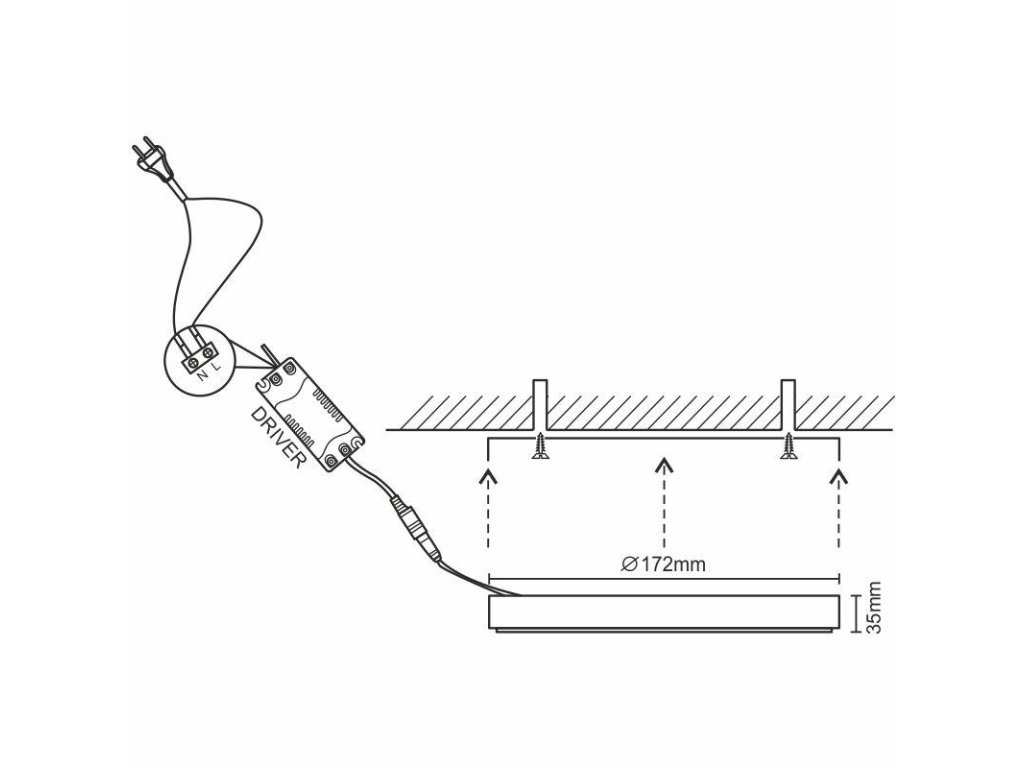 Panel je prispôsobený pre montáž priamo na stenu alebo strop.