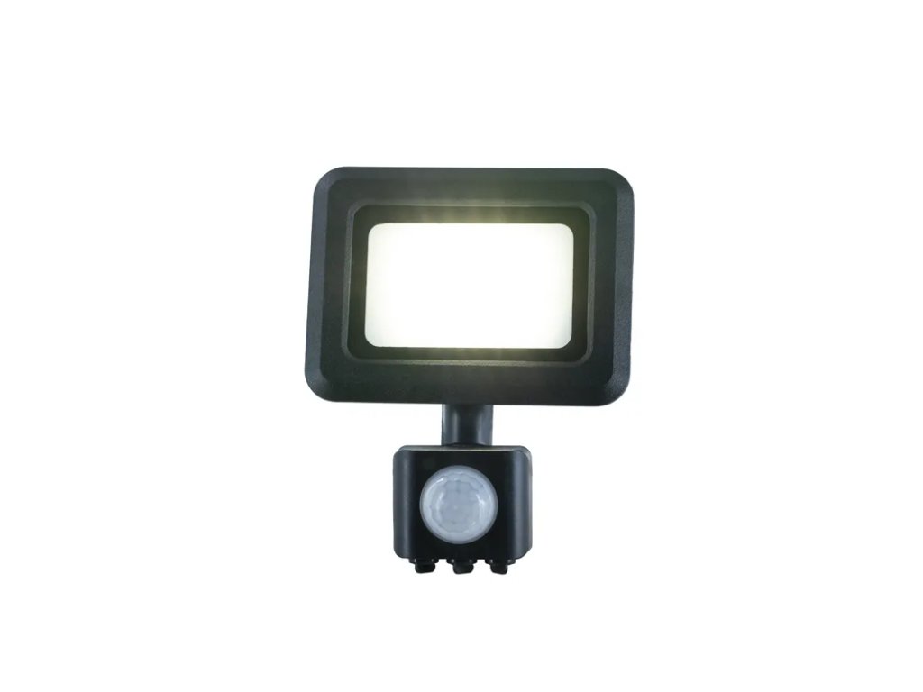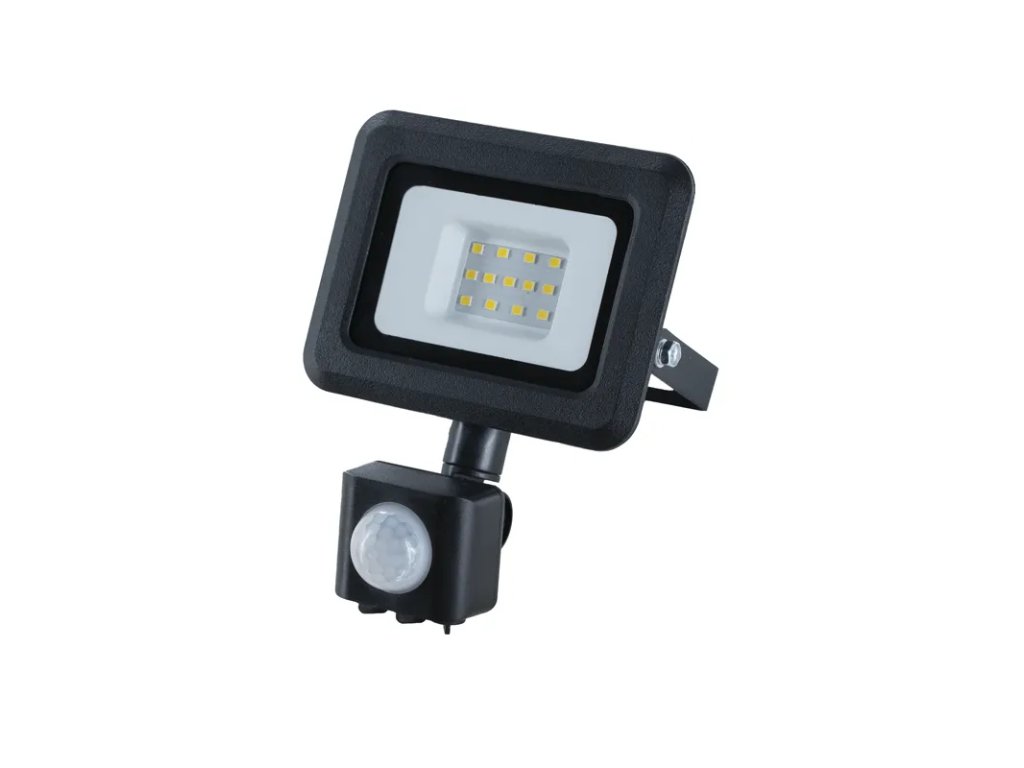 LED reflektor LF0021S v čiernej farbe, s výkonom 10W, svietivosťou 800Lm a farbou svetla 4000K disponuje držiakom, senzorom a vysokokvalitným LED čipom.