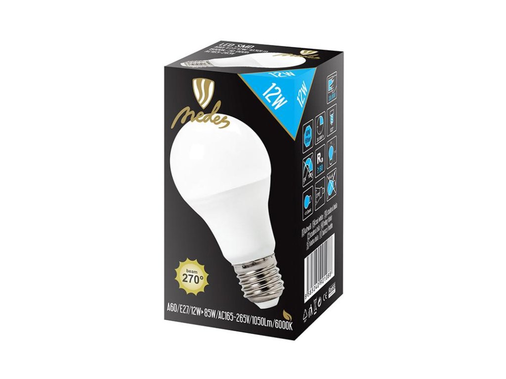LED žiarovka 12W - A60 / E27 / SMD / 6500K - ZLS503