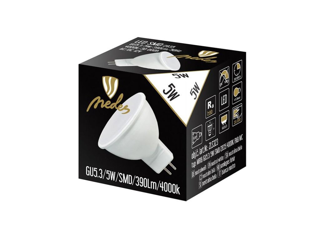 LED žiarovka ZLS323 značky NEDES je úsporná žiarovka so spotrebou 5W, svietivosťou 450Lm, s päticou GU5,3/MR16.