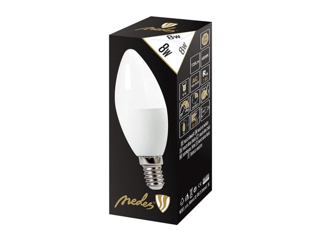 LED žiarovka 8W - C37 / E14 / SMD / 4000K - ZLS724