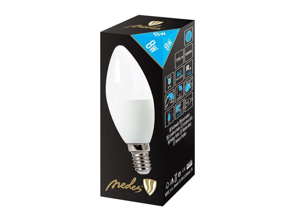 LED žiarovka 8W - C37 / E14 / SMD / 6500K - ZLS704