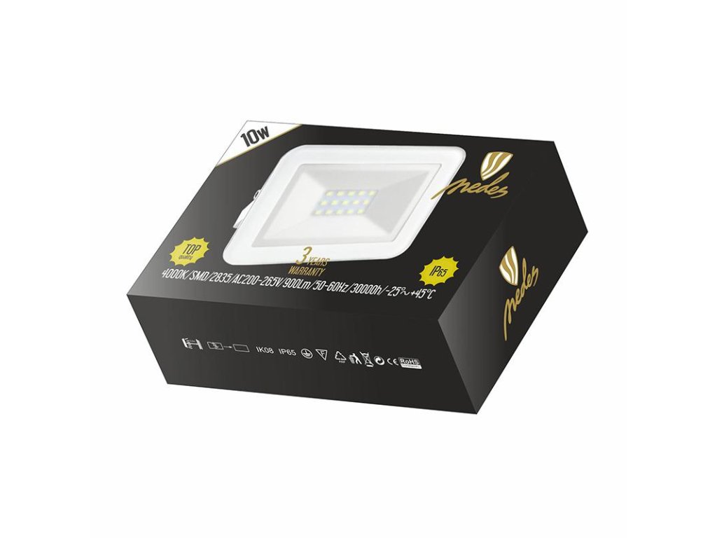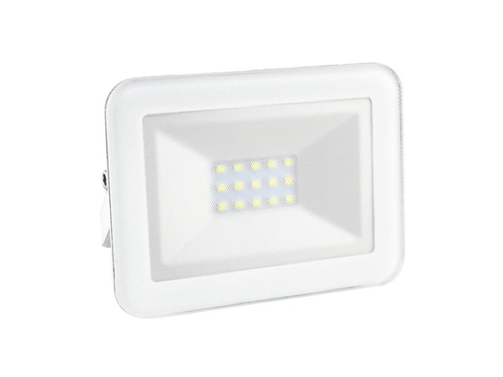 LED reflektor LF2121 v bielej farbe, s výkonom 10W, svietivosťou 900Lm a farbou svetla 4000K disponuje držiakom a vysokokvalitným LED čipom.