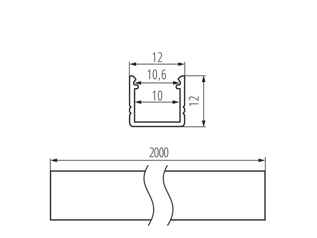 Hliníkový profil bez difúzora PROFILO F 2M 26553