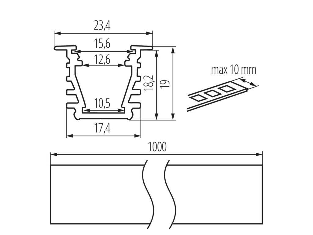 Vstavaný dekoratívny osvetľovací profilDodatočné parametre
