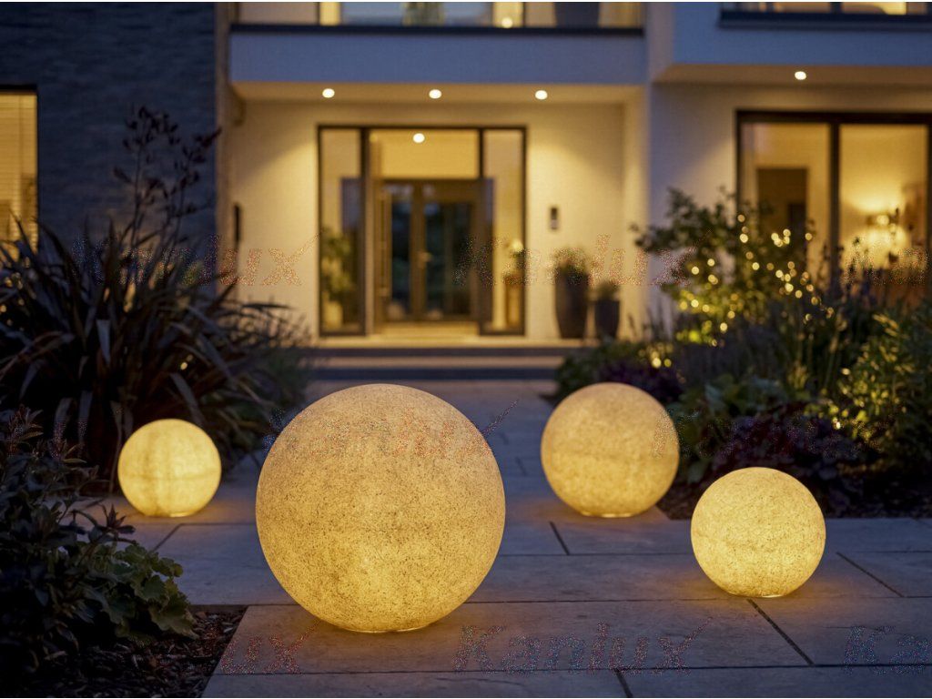 Kanlux STONO TRK je nová verzia ikonických záhradných gulí v teplej terakotovej farbe, ktorá dodáva inštaláciám veľmi prirodzený a dekoratívny charakter. Svetelné gule imitujúce kameň s priemermi 20, 30, 40 a 50 cm sa skvele kombinujú s vegetáciou, štrkom alebo drevenými prvkami záhradnej architektúry. Každé svietidlo je vybavené hrotmi, umožňujúcimi stabilné osadenie do zeme a použitie vymeniteľného zdroja svetla umožňuje prispôsobiť výkon osvetlenia individuálnym potrebám. STONO TERAKOTA je funkčné osvetlenie a výrazný dekoratívny prvok v jednom.Dodatočné parametre
