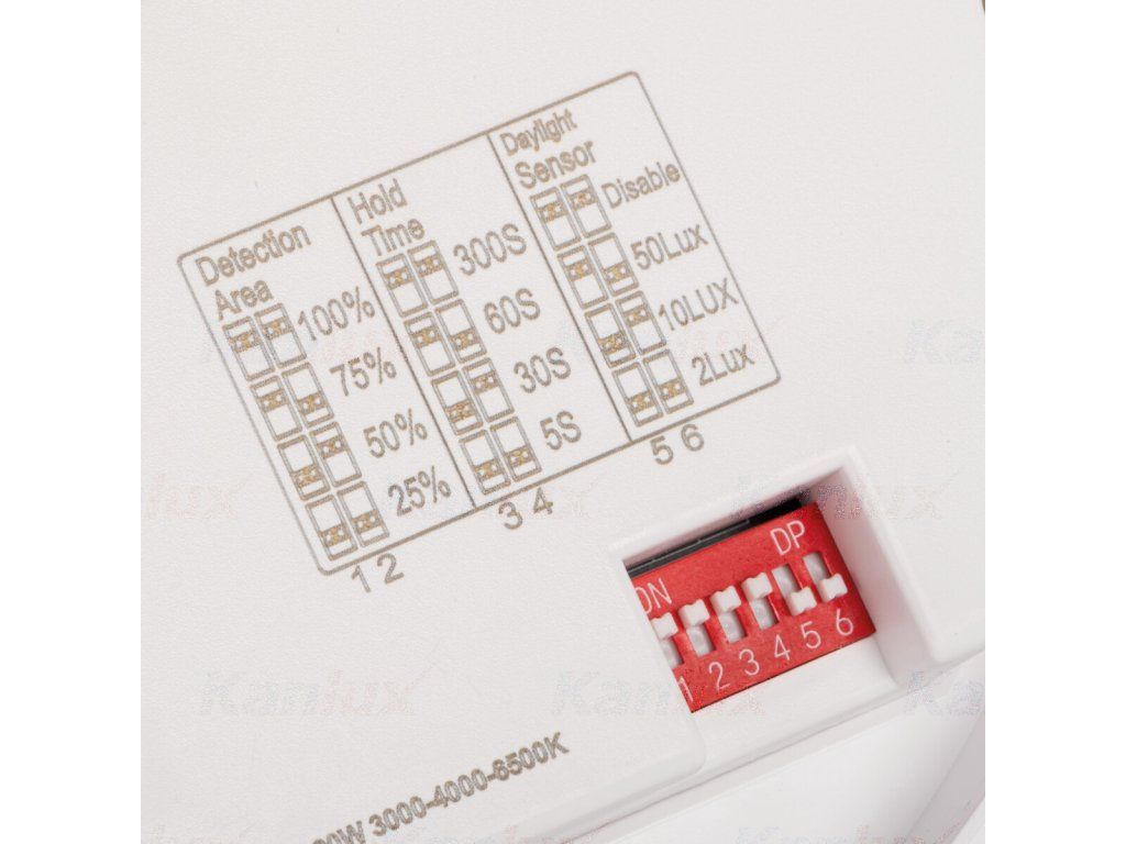 | Nastavenie úrovne intenzity osvetlenia, pri ktorom snímač deteguje pohyb [lx]: | 2/10/50/OFF |