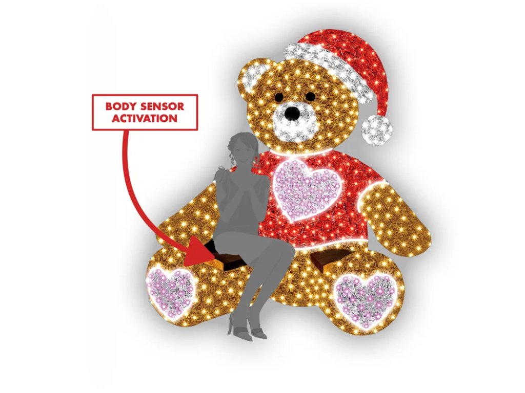 Medveď má v strede tela srdce, ktoré rovnako ako jeho chodidlá disponuje RGB ( zmenou farby svetla ).