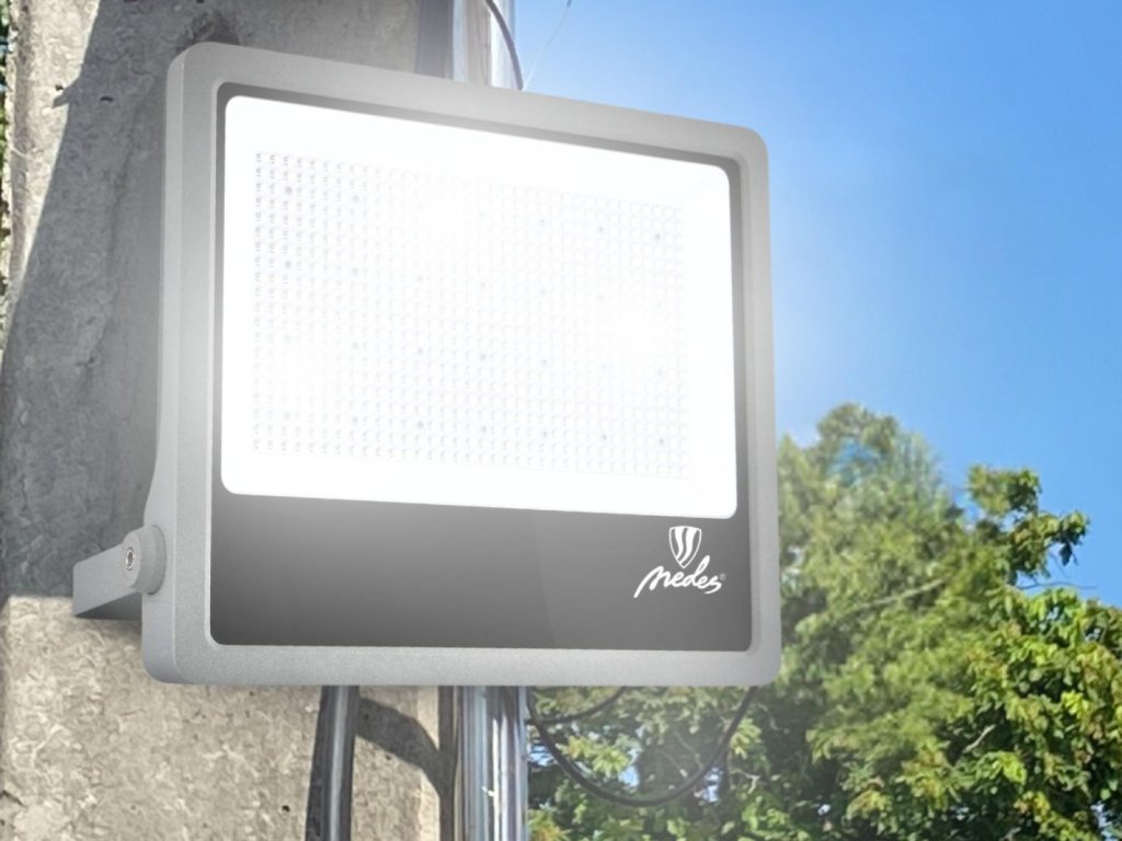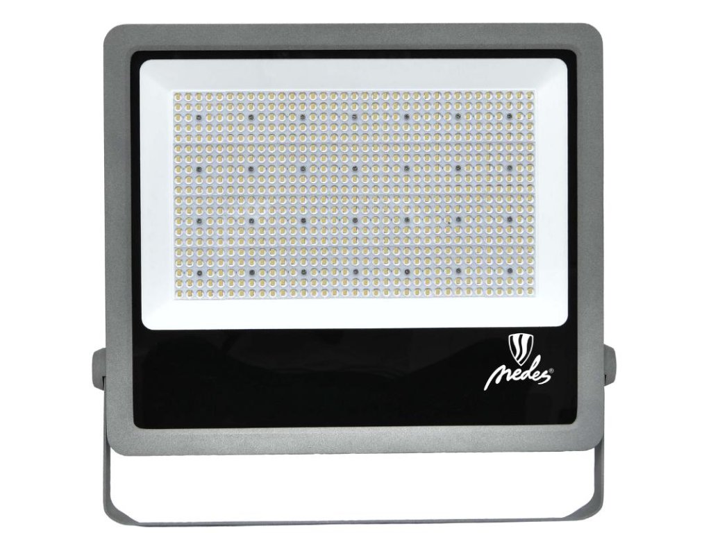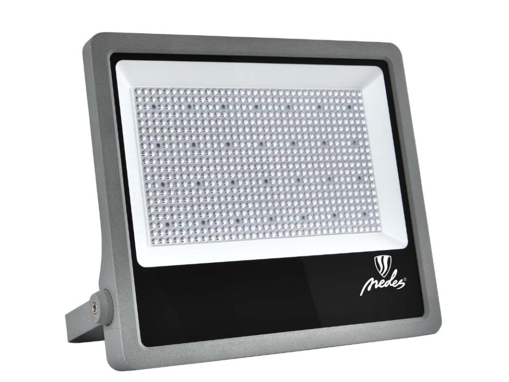 LED reflektor LF4029S v šedej farbe, s výkonom 400W, svietivosťou 60000Lm a farbou svetla 5000K disponuje držiakom a vysokokvalitným LED čipom.