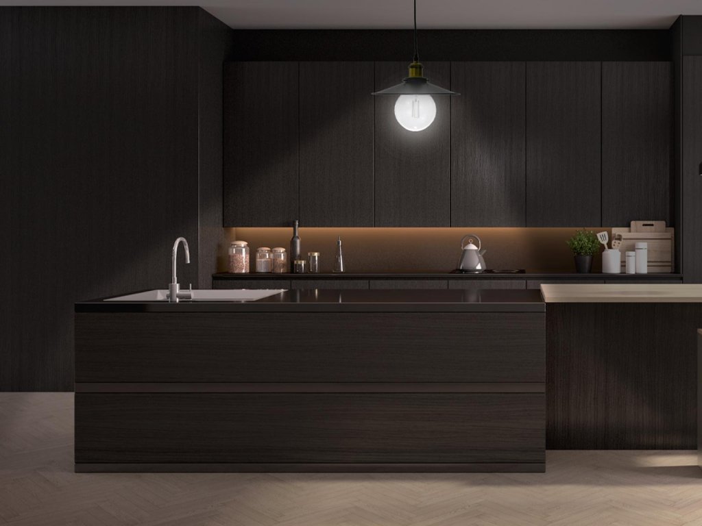 Svietidlo vyzdvihuje eleganciu a jednoduché línie, preto sa stáva dominantou priestoru.
